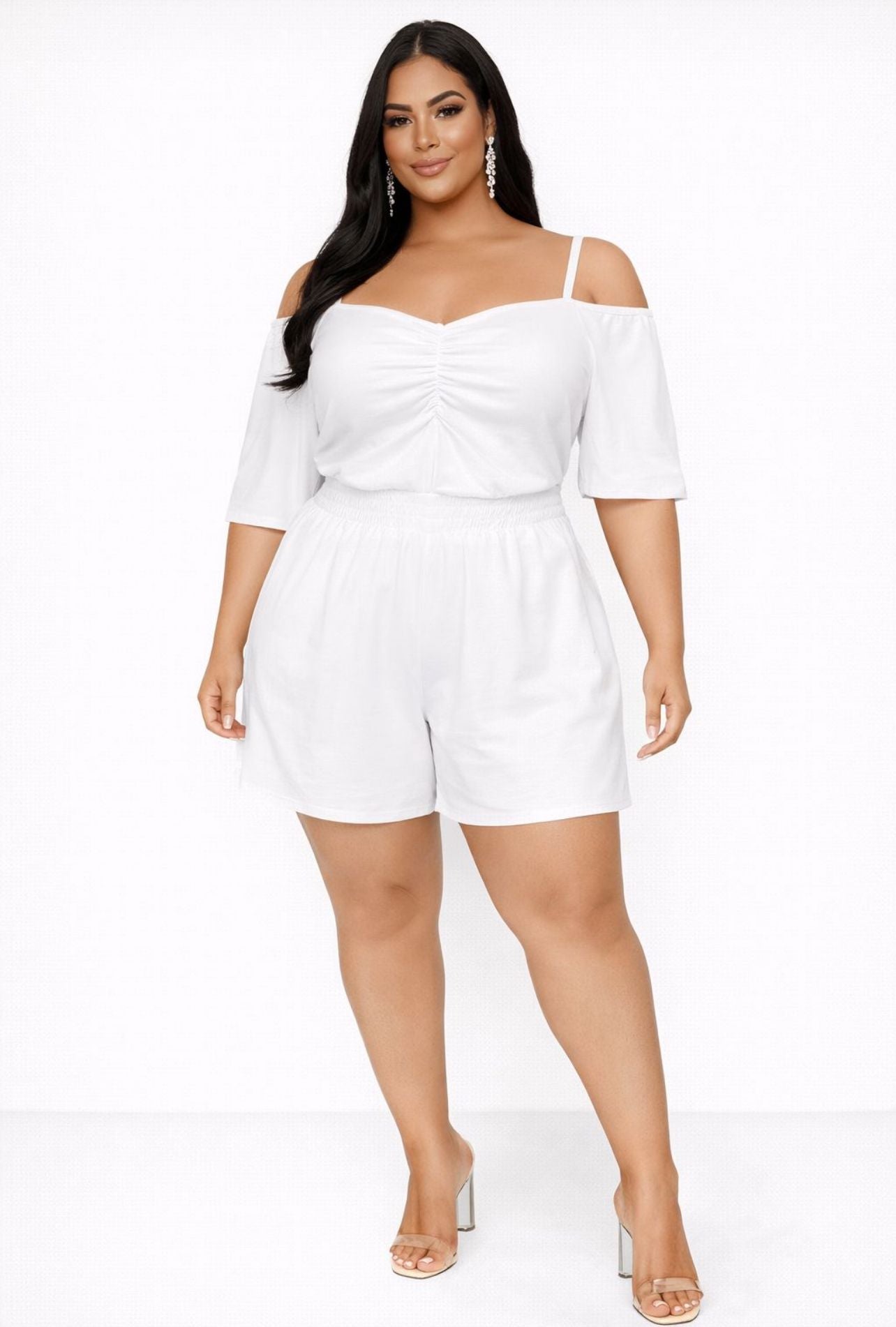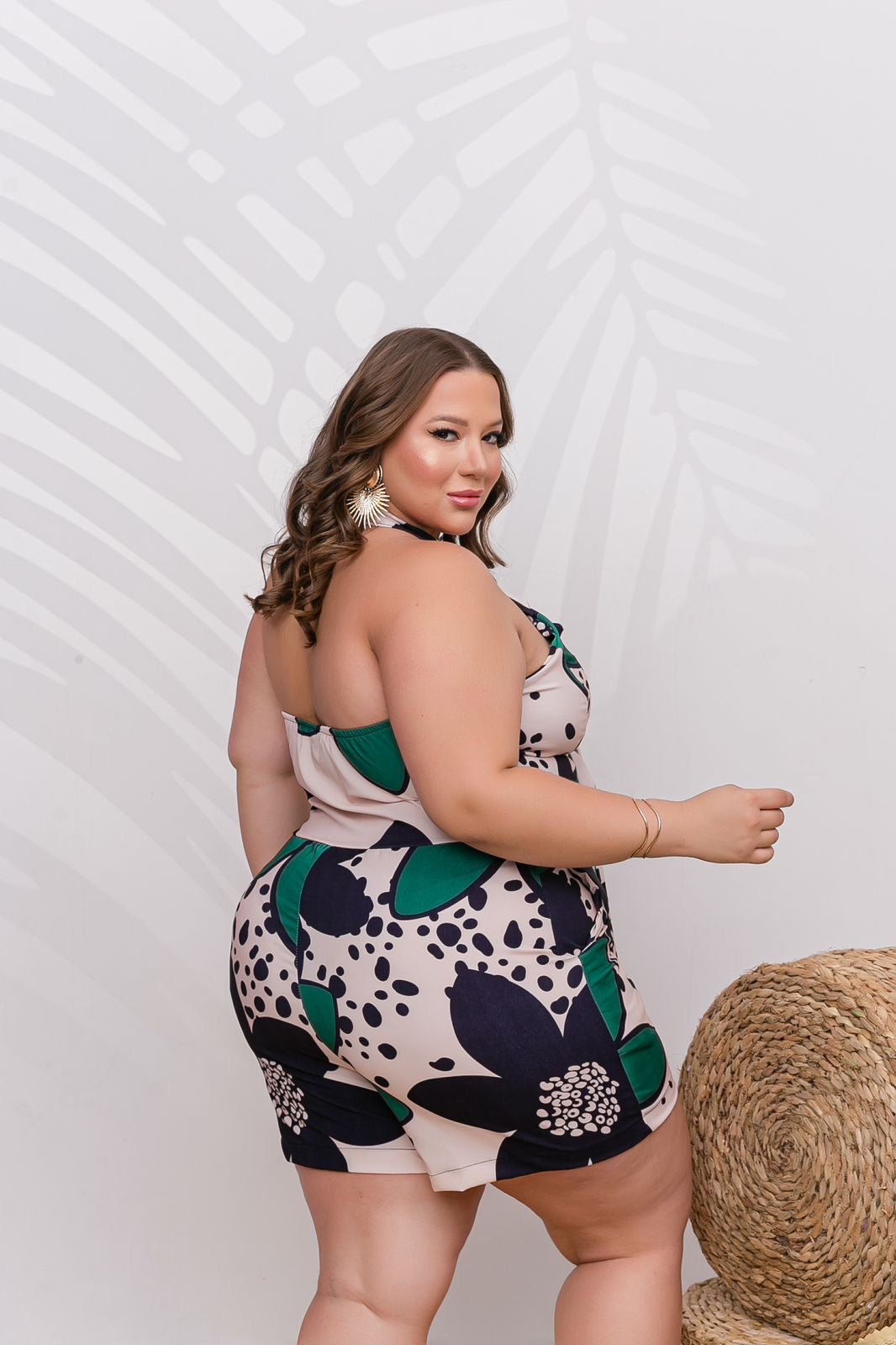 Romper en tejido de poliéster con spandex, cómodo y de ajuste flexible.