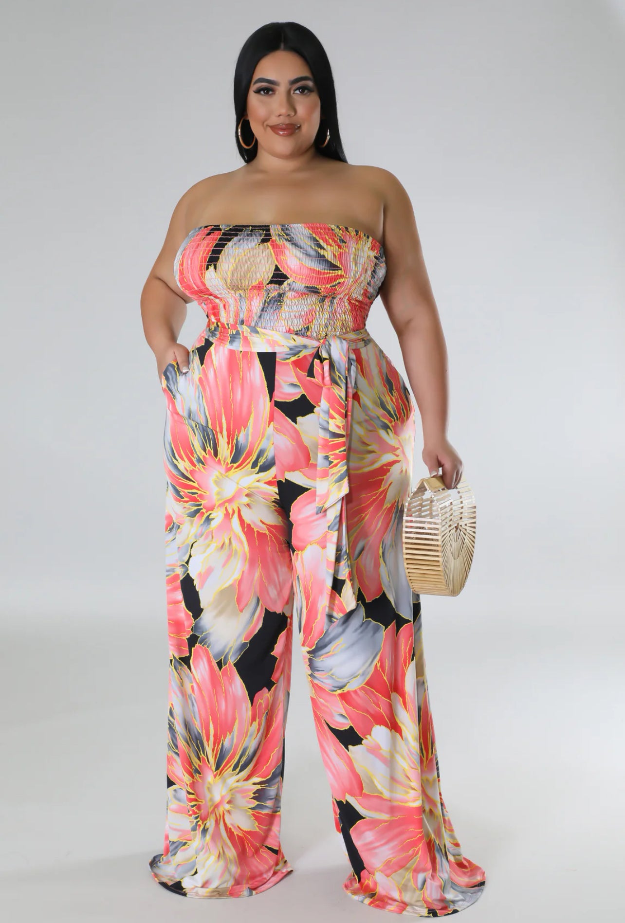 Jumpsuit en tejido de poliéster con spandex, cómodo y de ajuste flexible.