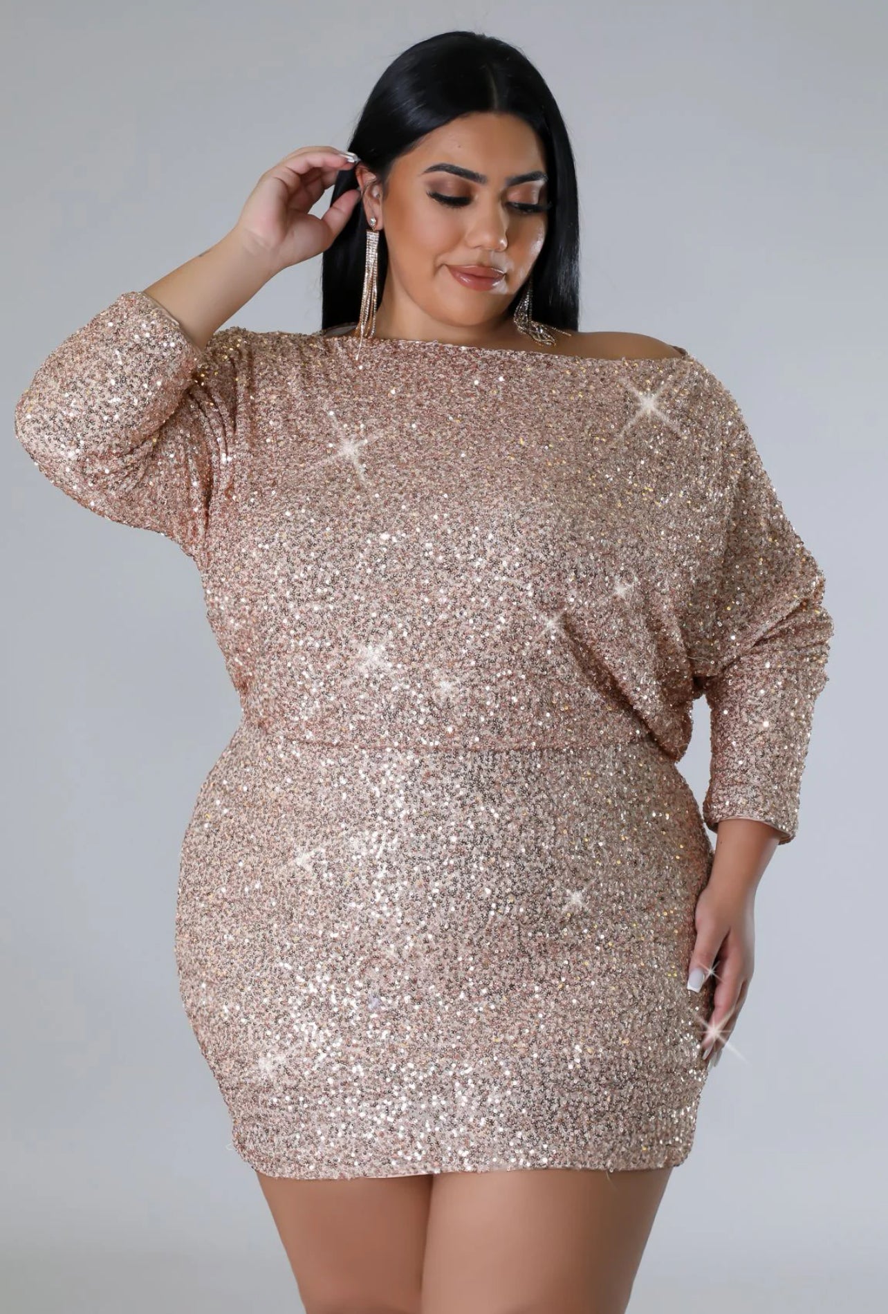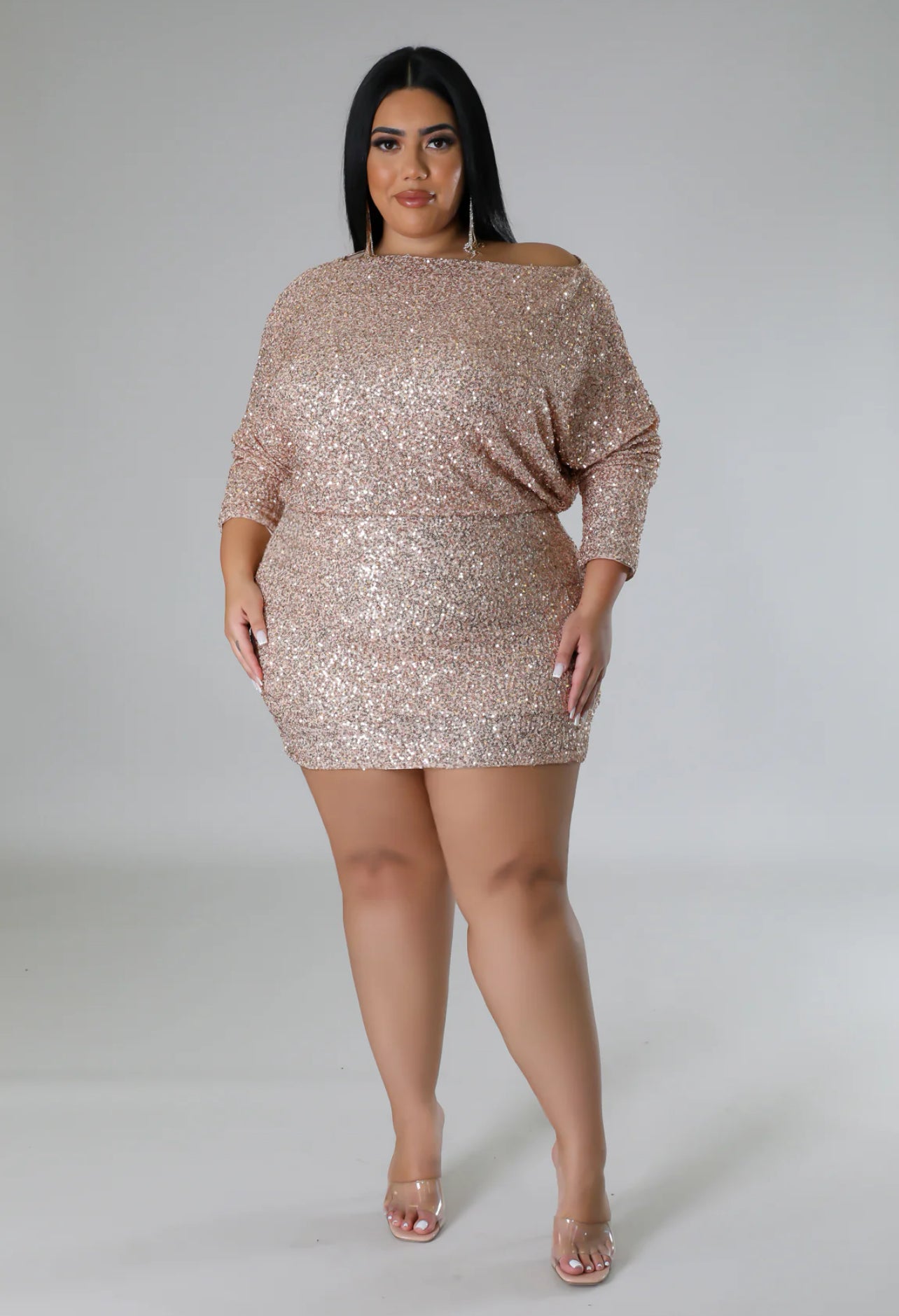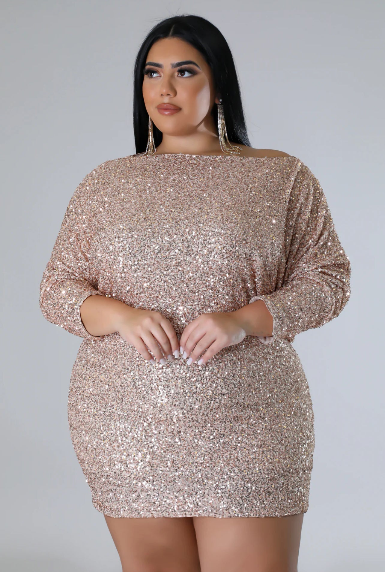 Vestido confeccionado en tela stretch que se ajusta cómodamente al cuerpo, ideal para realzar la silueta con elegancia. Presenta un diseño con lentejuelas, escote redondo y mangas a media longitud que aportan un balance perfecto entre sofisticación y comodidad. Cuenta con forro completo para mayor seguridad y un acabado pulido.