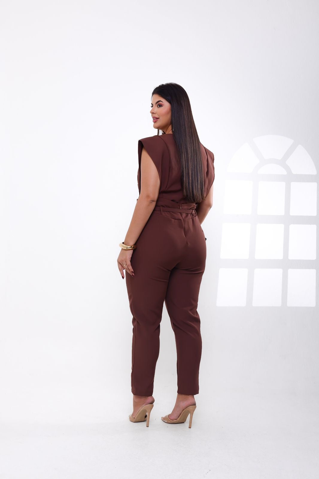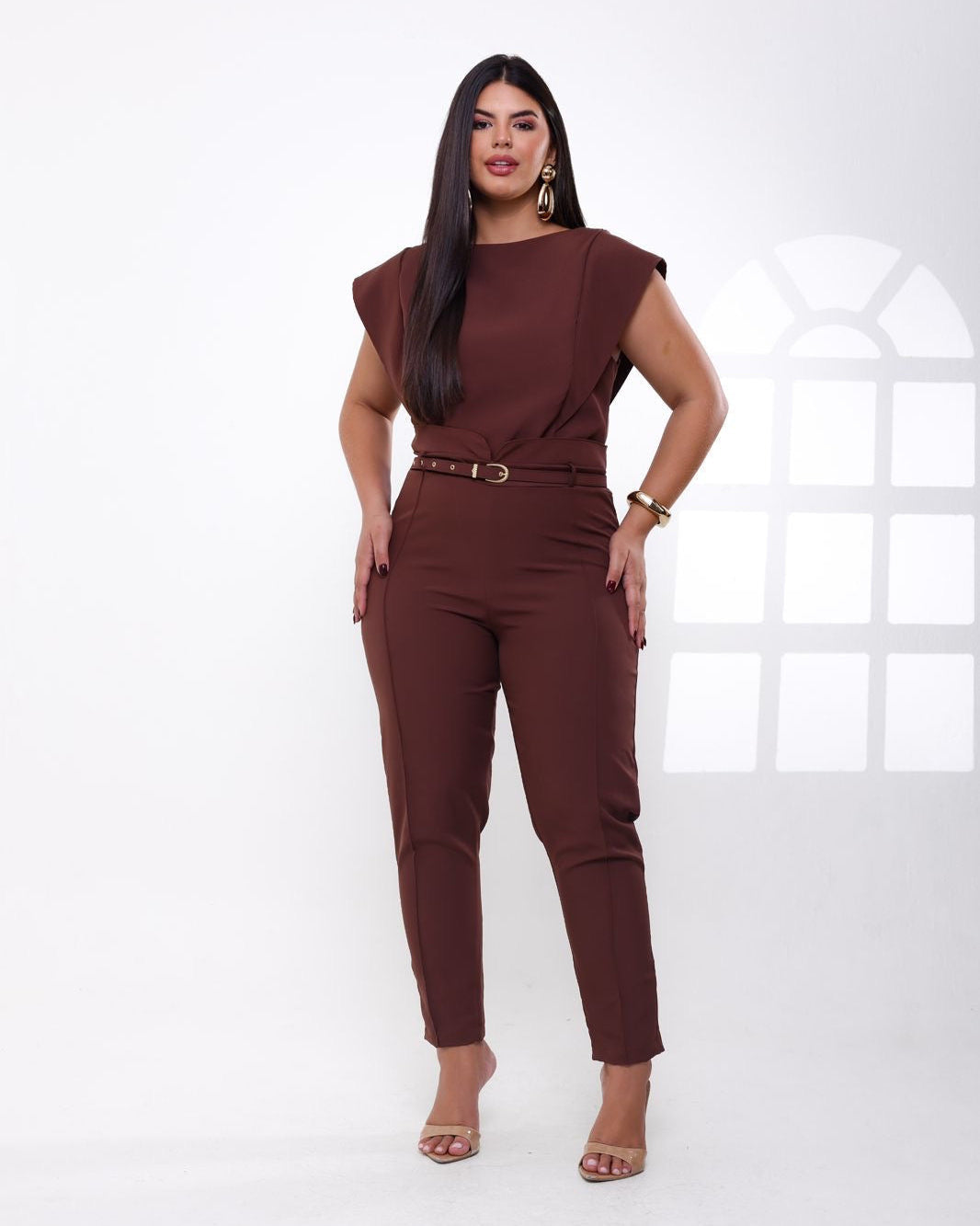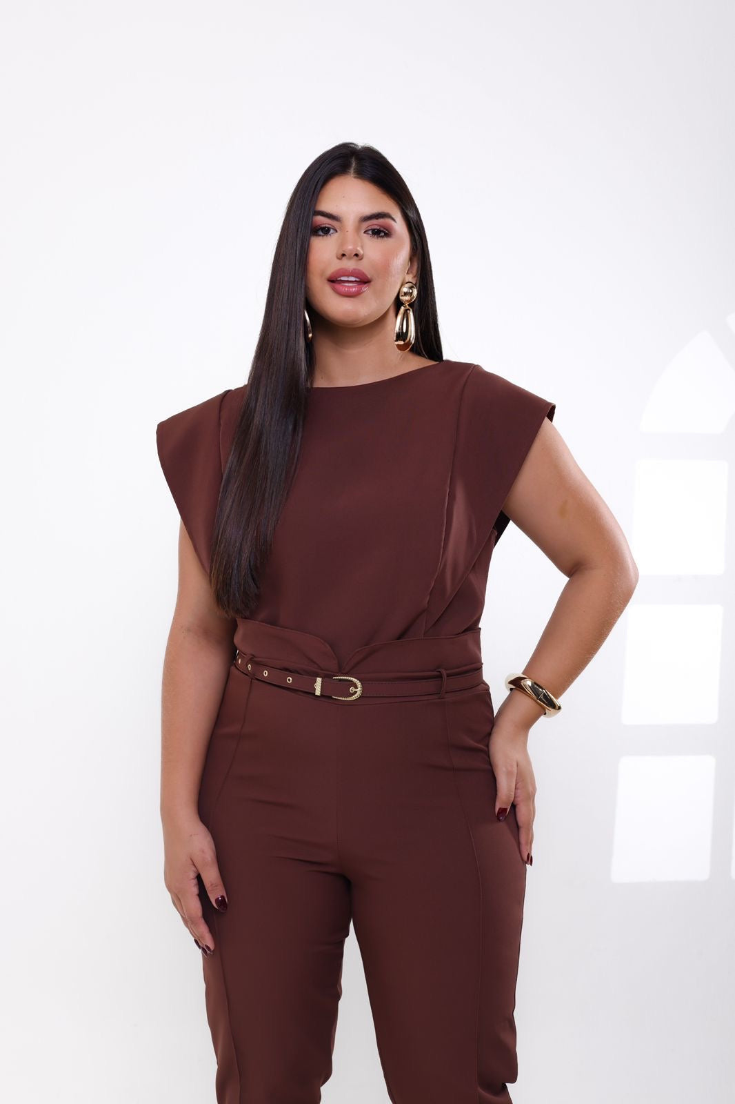 Set de 2 piezas confeccionado en tela de sastrería en poliamida, ligera y suave al tacto, ideal para looks elegantes y cómodos. Incluye correa.