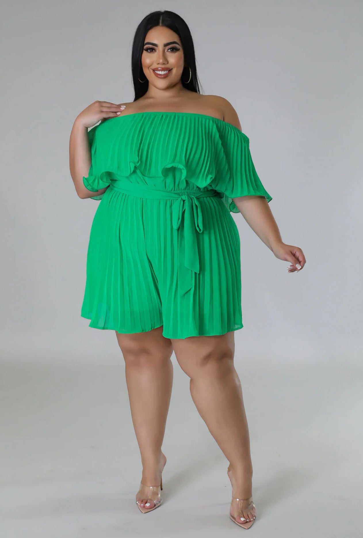 Romper en tejido de poliéster con spandex, cómodo y de ajuste flexible.