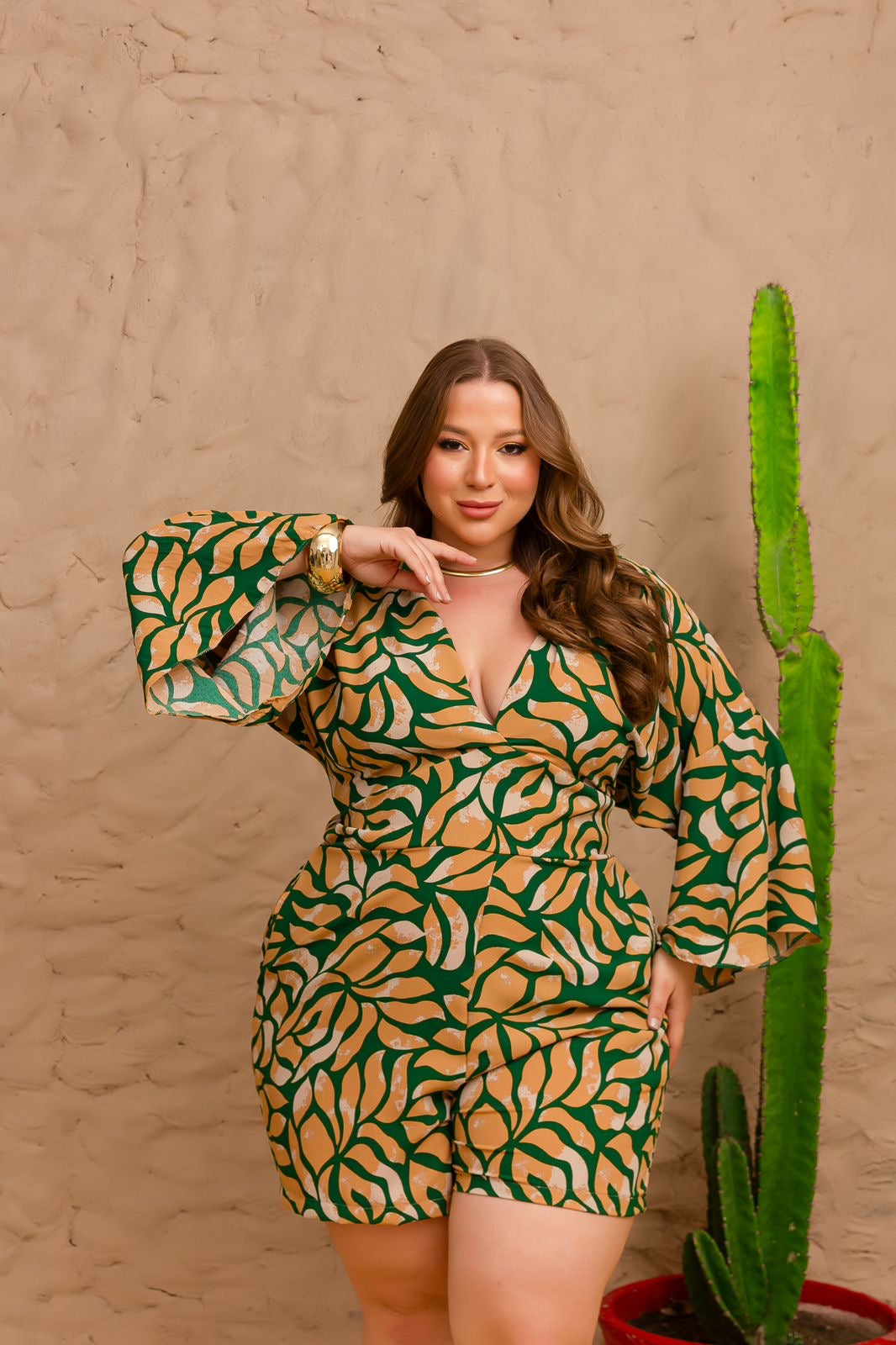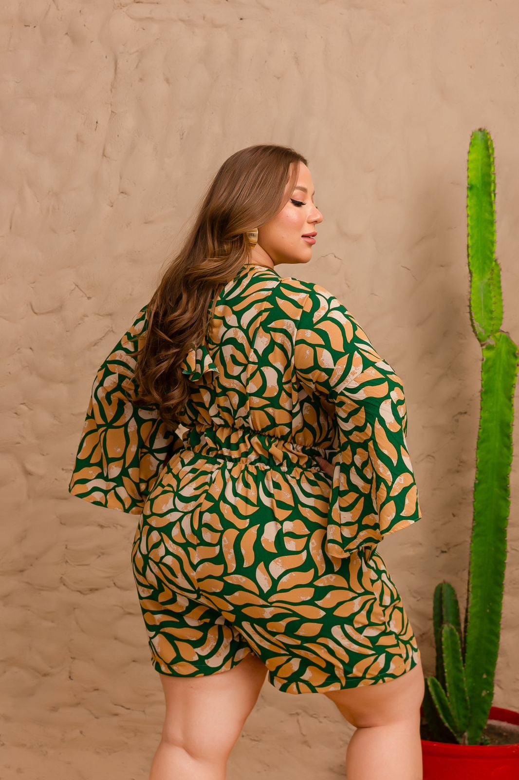 Romper en tejido de poliéster con spandex, cómodo y de ajuste flexible.