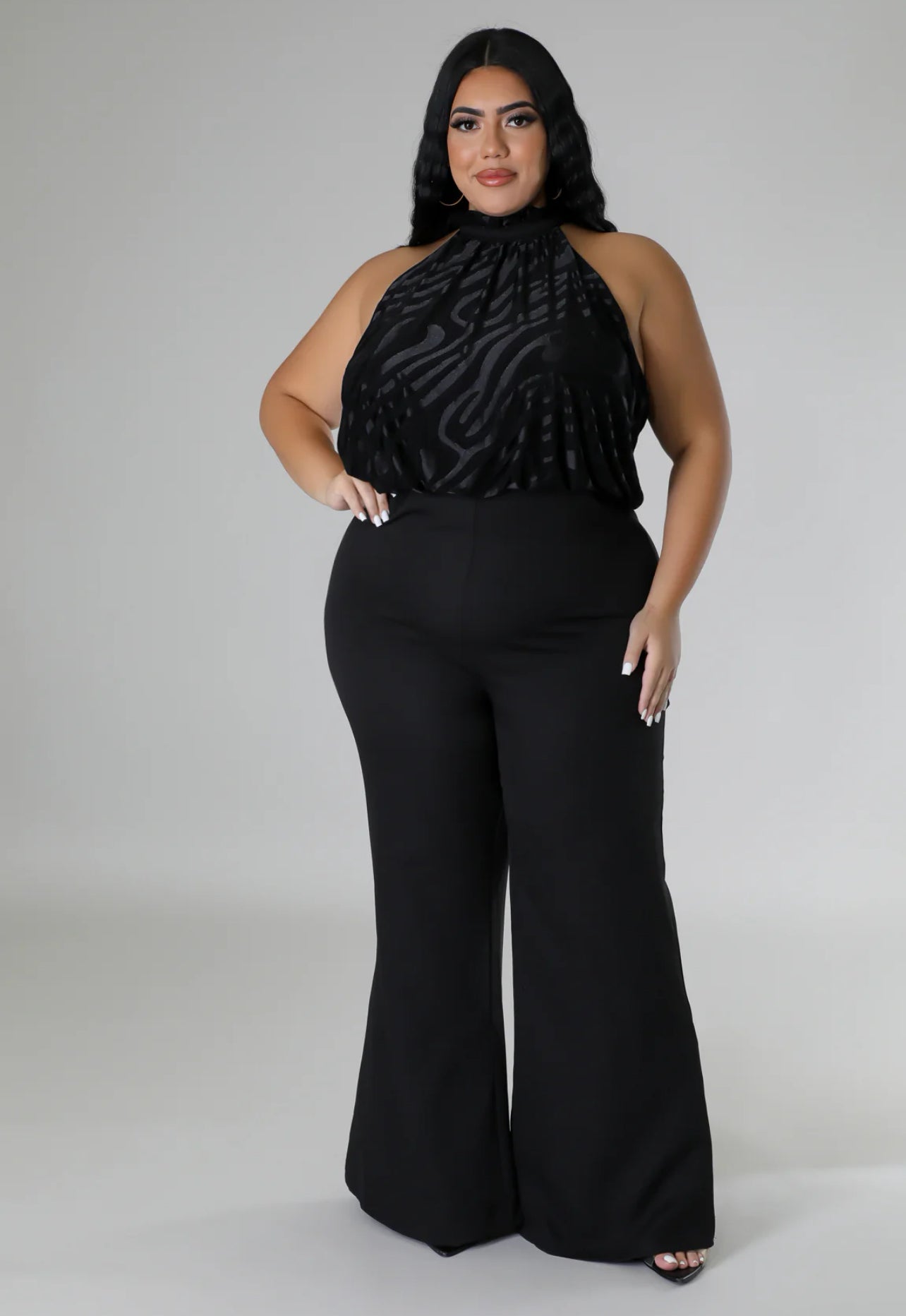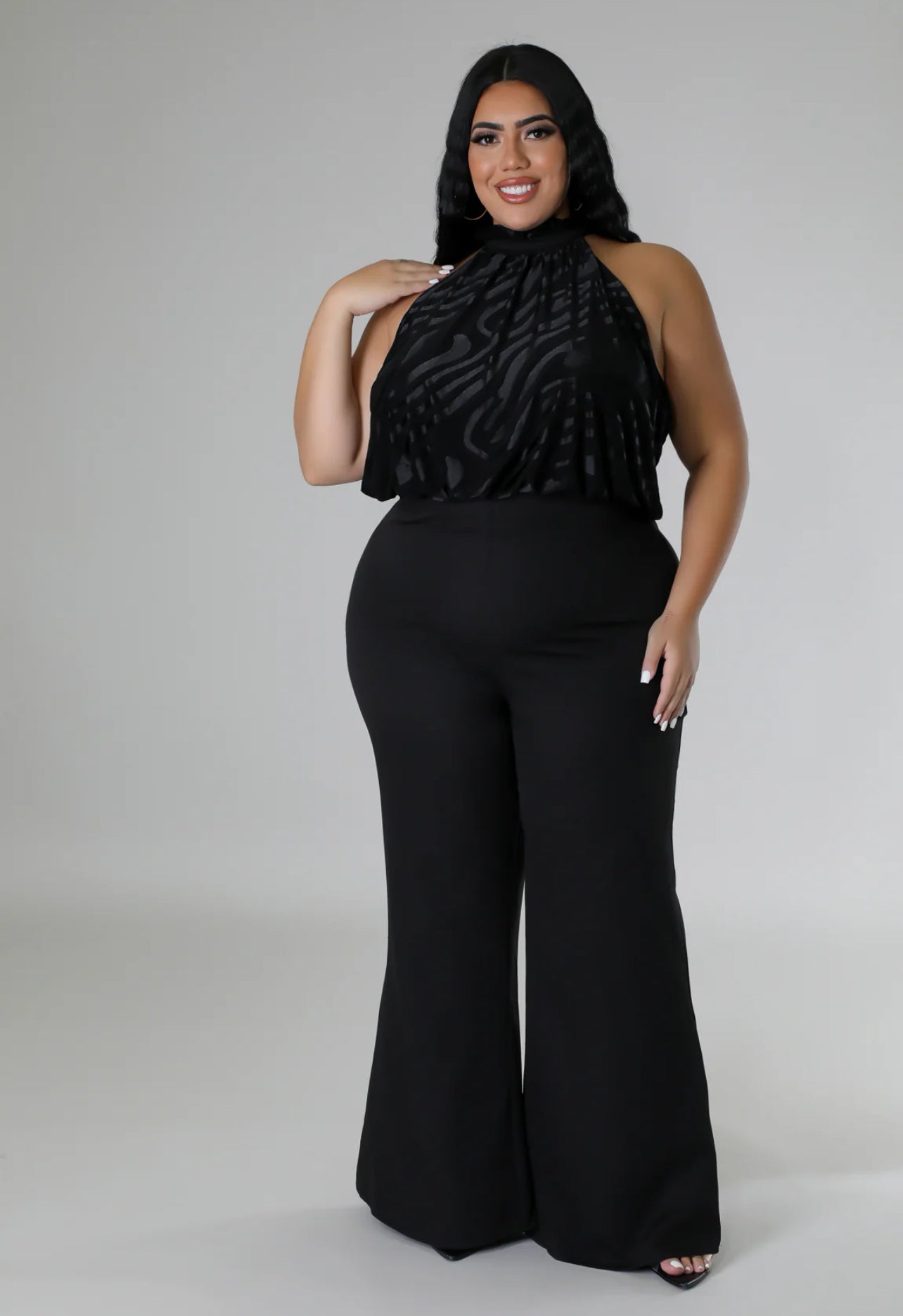 Jumpsuit en tejido de poliéster con spandex, cómodo y de ajuste flexible.