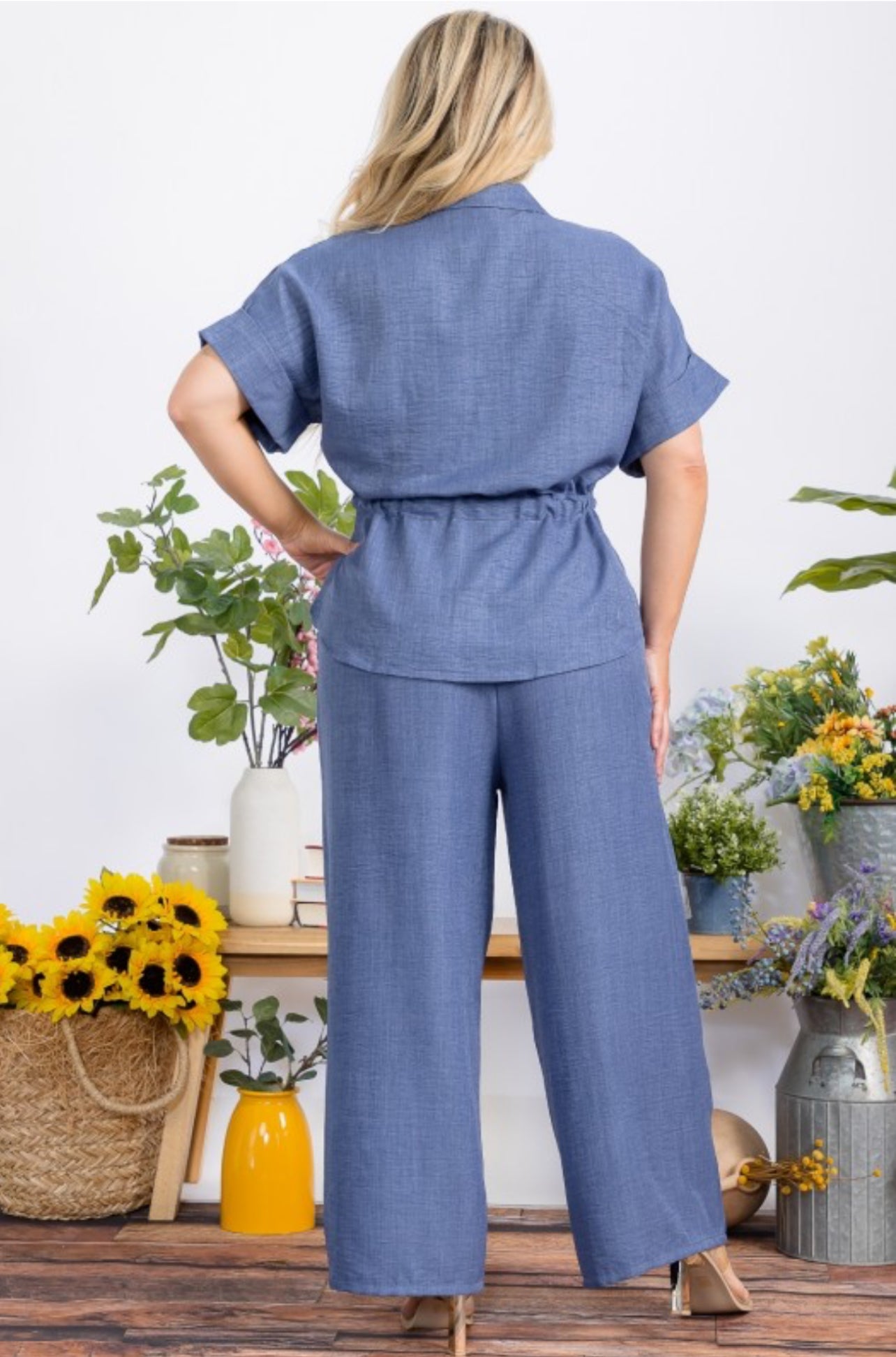 Set de pantalón largo en tejido de poliéster con spandex, cómodo y de ajuste flexible.