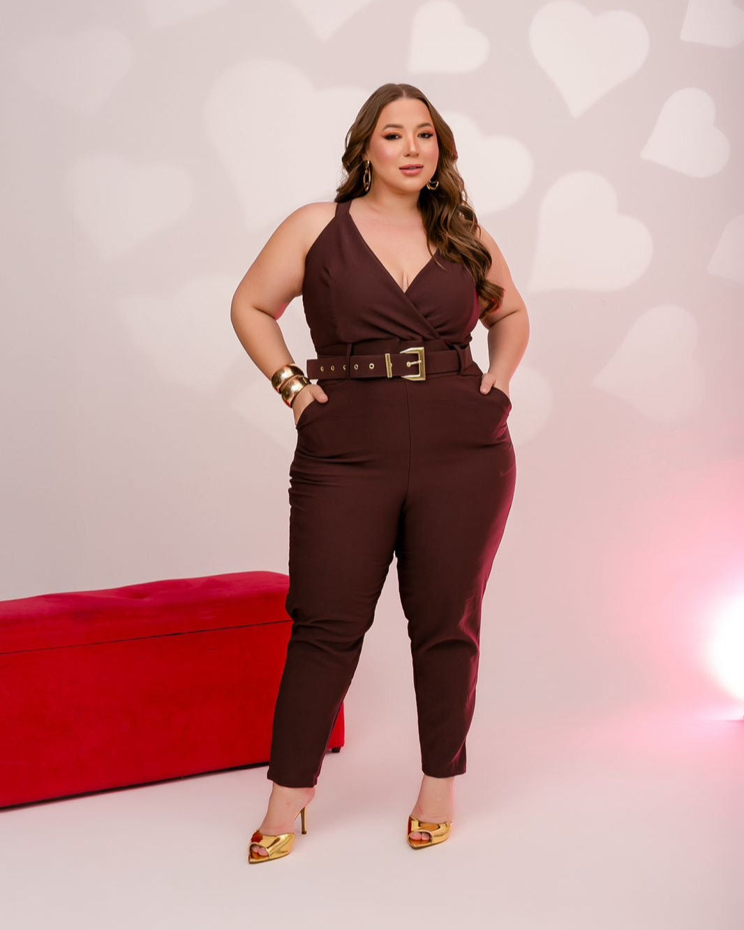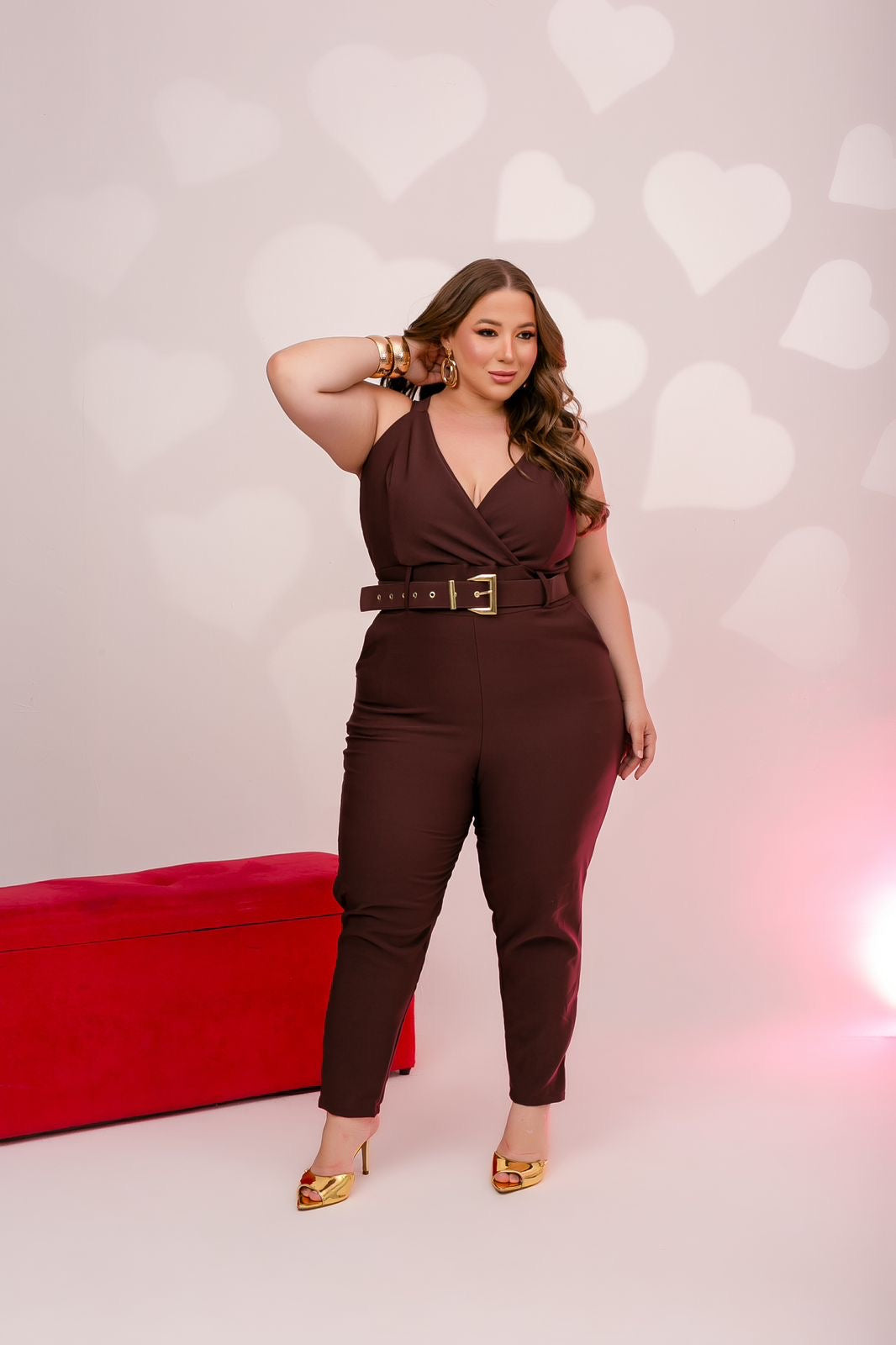Jumpsuit confeccionado en tela de sastrería en poliamida, ligera y suave al tacto, ideal para looks elegantes y cómodos. Incluye correa y no tiene strech.