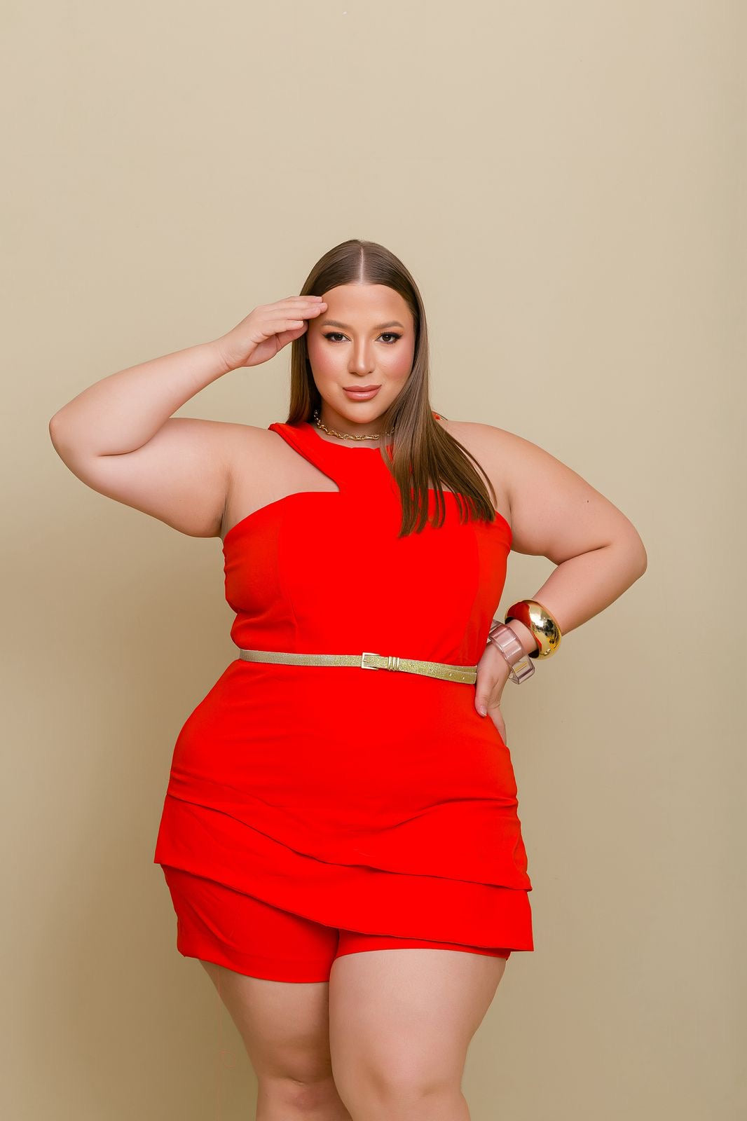 Romper en tejido de poliéster con spandex, cómodo y de ajuste flexible.