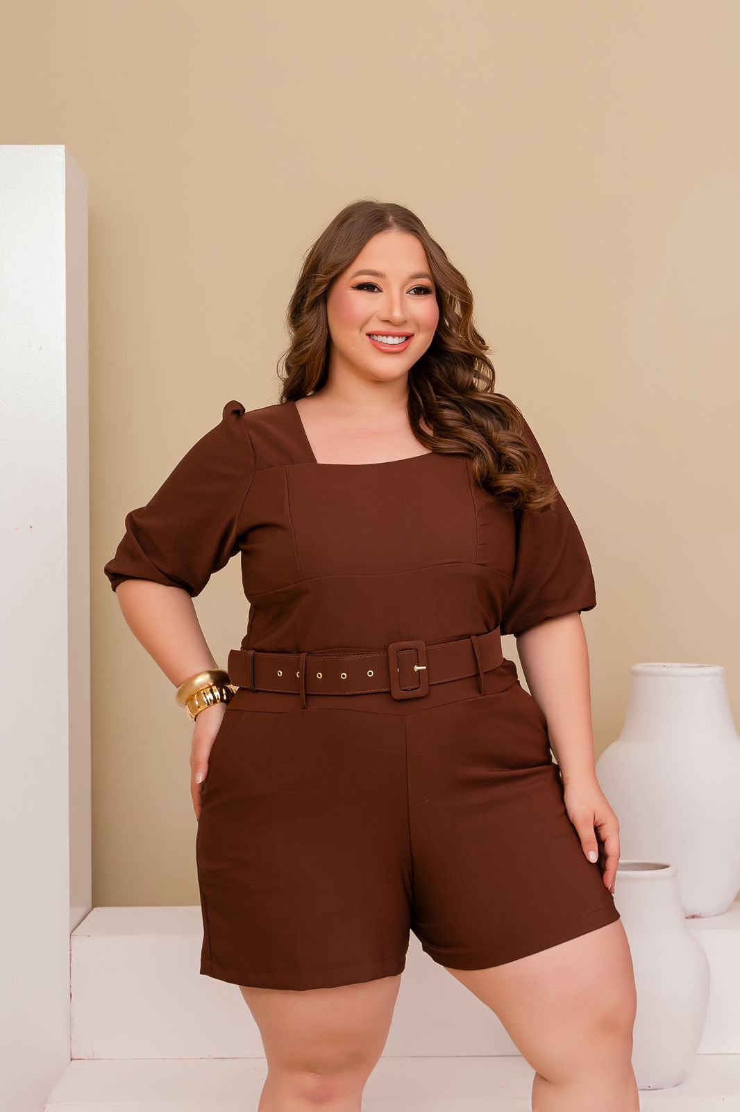 Romper confeccionado en tela de sastrería en poliamida, ligera y suave al tacto, ideal para looks elegantes y cómodos. Incluye correa.